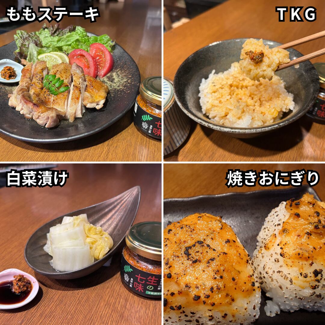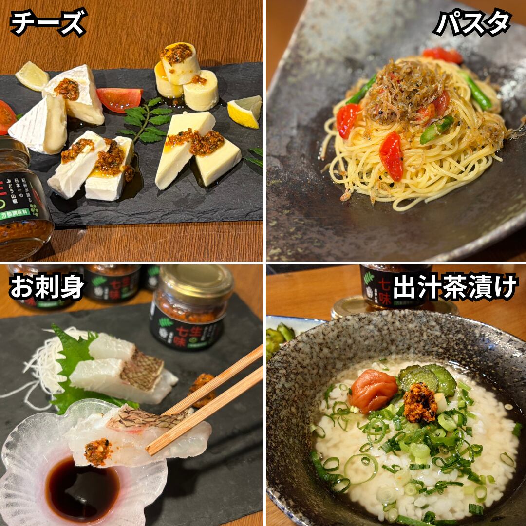 この生の七味は、鍋や麺類の薬味、焼き鳥、だけでなくパスタやアヒージョ、ご飯類などさまざまな料理にぴったり。料理に加えることで、いつもとは違う贅沢な味わいを楽しむことができます。