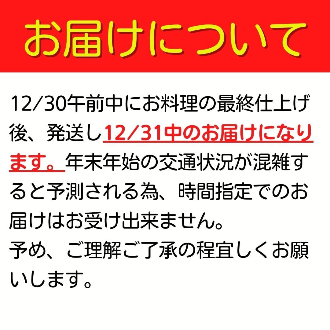 ※最大限、お料理の状態を保つ対策をしていますが配送による荷崩れが起こる場合が考えられます。